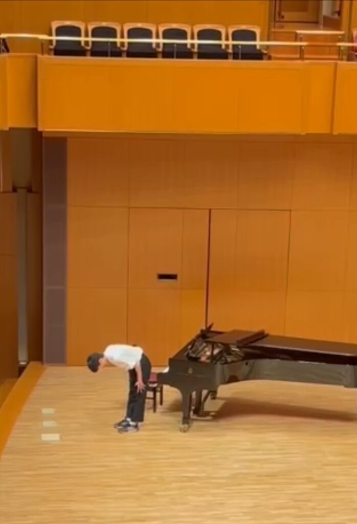 指揮者としてステージに立つ生徒の一人は、ピアノのレッスンを通して音楽に自信を持てるようになりました。